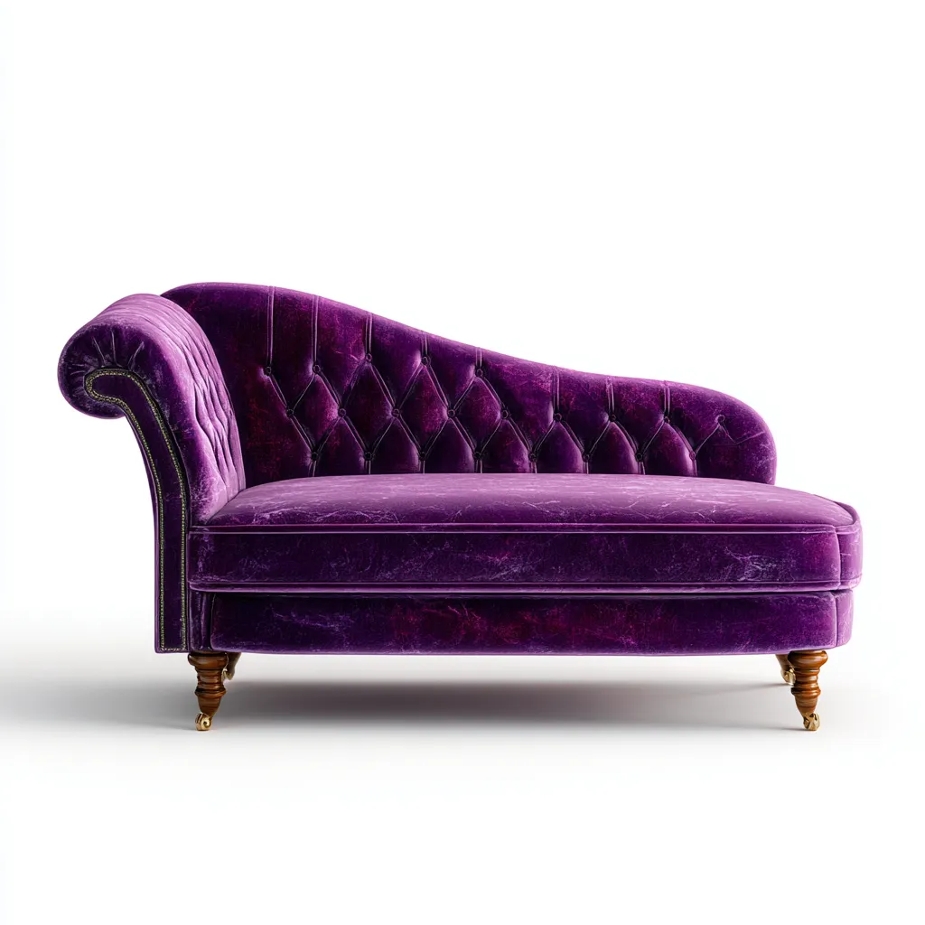 Rivestimento in velluto nella tonalità viola abbinato a una struttura portante in legno. L'aspetto materico e il colore intenso valorizzano uno stile classico dal carattere ricercato.