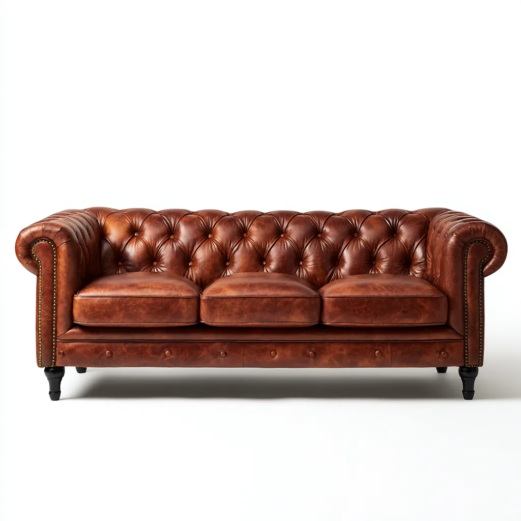 Rivestimento in pelle di colore marrone con lavorazione capitonne che valorizza l estetica complessiva. La struttura interna robusta e i piedini in legno garantiscono stabilita e una lunga durata nel tempo.