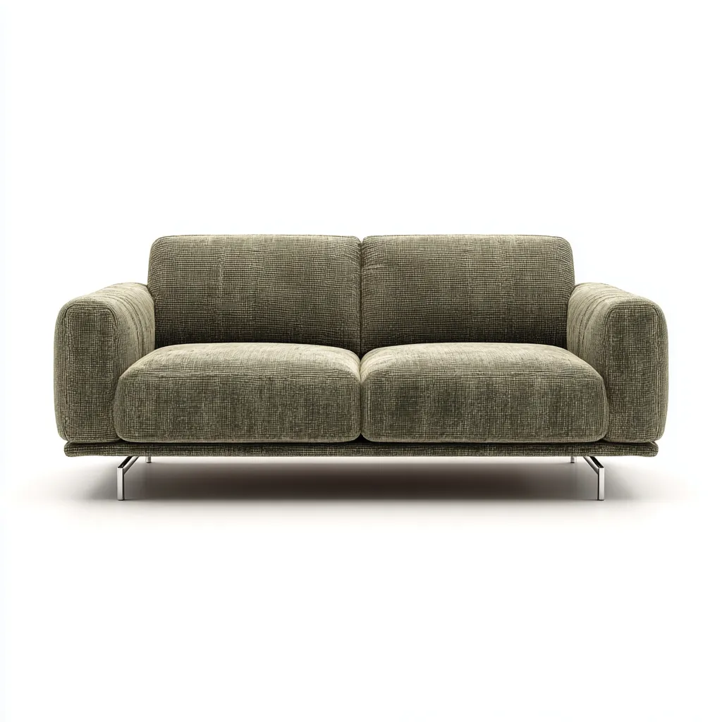 Rivestimento in tessuto di colore verde oliva abbinato a una struttura interna solida. L imbottitura garantisce comfort e supporto mentre i piedini in metallo assicurano stabilita e un estetica moderna.